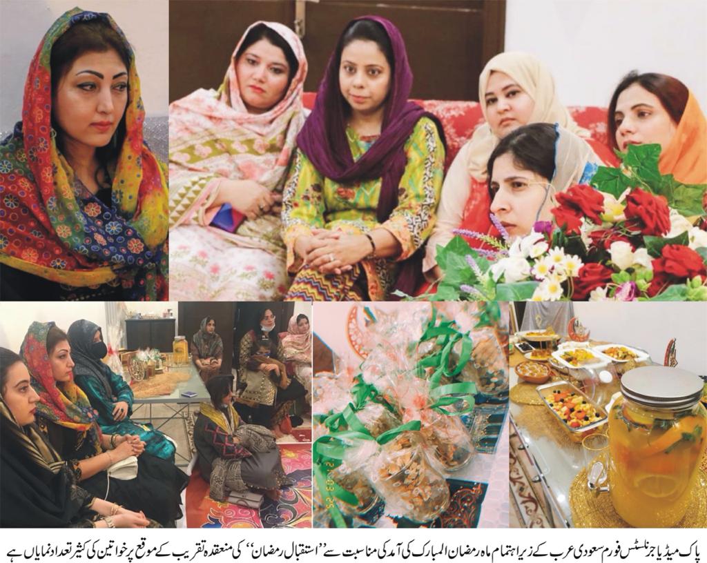 سعودی عرب کے شہر جدہ میں پاک میڈیا جرنلسٹس فورم کے زیر اہتمام رمضان المبارک کی آمد کی مناسبت سے ’’استقبال رمضان‘‘ کی ایک تقریب منعقد ہوئی جس میں بڑی تعداد میں خواتین نے شرکت کی۰