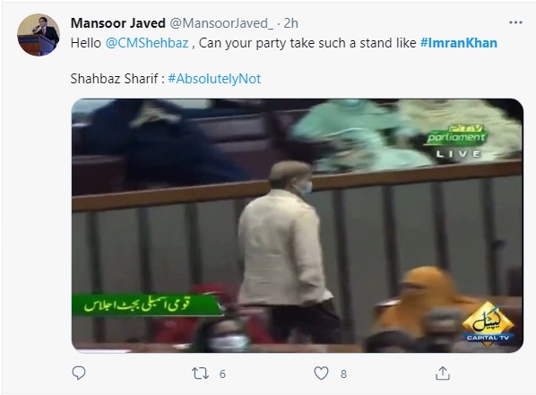 اس موقع پر منصور جاوید نامی ایک ٹوئٹر صارف نے مسلم لیگ ن کی قیادت سے سوال کا موقع ہاتھ جانے دینا مناسب نہ سمجھا
